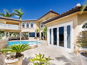 Spacious coastal-themed dining and living area with wooden ceiling and ocean artwork.